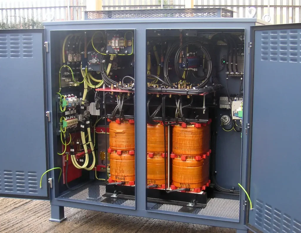 Customer: Balfour Beatty Mott MacDonald / Electrokinetic. 1 off 110kW Transformer & 12 Pulse Rectifier, complete with variable voltage output with automatic voltage tap changing via a built in HMI unit & PLC with remote status reporting all built into a 8×109 shipping container for multisite use.
